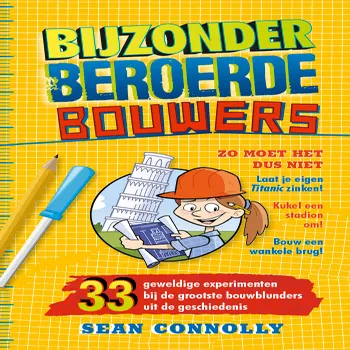 Bijzonder beroerde bouwers is een geweldig leerzaam boek voor nieuwsgierige bouwkundigen in de dop van Sean Connolly en illustrator Pat Lewis. Voor leergierige lezers vanaf 9 jaar.Eigenlijk is de scheve toren van Pisa een dikke fail. En het is niet de enige bouwblunder uit de geschiedenis. Wat dacht je van de presentatie van de elektrische auto zonder dak op een regenachtige middag, midden in de winter? Of het Louisiana-meer dat leegliep als een badkuip? Bijzonder beroerde bouwers staat vol hilarische bouwkundige rampen en proefjes om zelf mee te experimenteren. Want jij kunt dit stukken beter! Toch?