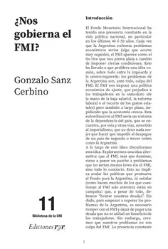 El Fondo Monetario Internacional ha tenido una presencia constante en la vida política nacional. Cada vez que la Argentina enfrenta problemas económicos serios (algo que ocurre muy seguido), el FMI nos presta plata a cambio de imponer condiciones. Esto ha llevado a que prolifere una idea común, sobre todo entre la izquierda: los problemas de la Argentina son, ante todo, culpa del FMI. A lo largo de este libro discutiremos esta idea. La presencia constante del Fondo en la Argentina no es más que un síntoma, la expresión superficial de un problema mucho mas grave, más profundo: la crisis de acumulación en la que se encuentra el país desde los '50. El problema de la Argentina es una estructura económica agotada, que lleva a los gobernantes de turno a endeudarse una y otra vez, y a no dejar nunca de pagar la deuda, que es la condición para seguir endeudándose. En suma, lo que está en cuestión es el capitalismo argentino como tal.