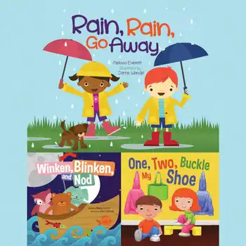 Rain, Rain, Go Away celebrates and encourages the playful spirit of children, no matter the weather! From sunshine to rain, nothing can stop the fun of a group of friends ready to play outside together! *** Join Winken, Blinken, and Nod on their fantastical journey to a land beyond sleep in this expanded version of the classic children's tale. *** One, Two, Buckle My Shoe! Never has counting been so adorable! Join friends as they laugh and frolic, while learning to count things around them as they head outside to play!