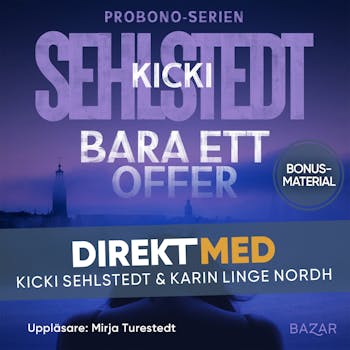 Vi får lyssna på ett samtal mellan Kicki Sehlstedt och hennes förläggare Karin Linge Nordh där Kicki berättar om hennes arbete Bara ett offer och hela Probono-serieb. Vi får också veta var inspirationen bakom namnet till Probono-serien kommer i från, hur Kickis skrivprocess ser ut och vad som väntar i framtiden.