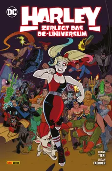 Harley Quinn findet in einem alten Lagerhaus eine geheimnisvolle Zeitmaschine, von der sie natürlich nicht die Finger lassen kann – und so greift die Clownprinzessin in den Lauf der Geschichte ein und stürzt das DC-Universum ins Verderben! Sie verhindert nicht nur, dass die Justice League überhaupt zusammenkommt, sondern verändert auch die Entwicklung von Helden wie Superman, Wonder Woman oder Batman. Mit jedem Versuch, die Dinge wieder in Ordnung zu bringen, erschafft Harley eine neue Realität im Multiversum, die noch chaotischer ist als die vorige. Zu allem Überfluss begegnet sie auf diesem irrsinnigen Trip einer Version von sich selbst – was nicht gerade zu weniger Chaos führt ...
