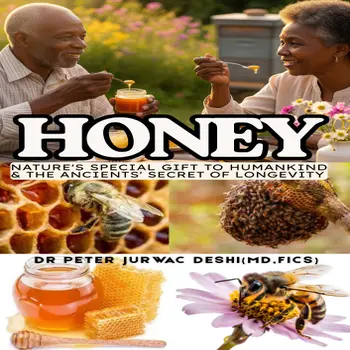 This book, titled "HONEY, NATURE'S SPECIAL GIFT TO HUMANKIND & THE ANCIENTS' SECRET OF LONGEVITY" by Dr. Peter Jurwac Deshi, explores the multifaceted nature of honey and the honeybee. The author, a trauma surgeon, highlights honey's potential as a superfood for a healthy, productive, and prolonged life, drawing from personal experiences, including its traditional use by his grandmother for various ailments and its effectiveness in wound management in his clinical practice.