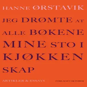 "Jeg drømte at alle bøkene mine sto i kjøkkenskap" er Hanne Ørstaviks første samling av essays og artikler, skrevet over nesten tjue år. Flere av tekstene sirkler rundt det emosjonelle og eksistensielle i kunsten og litteraturen og tekstene i samlingen er både vidtfavnende og dyptborende. Ørstavik skriver om egen skriving og om bøker av Marguerite Duras, Christa Wolf, Birgitta Trotzig, Guy Talese, Søren Kierkegaard og Henrik Ibsen, verk av kunstneren Louise Bourgouis, og filmer av Michael Haneke, Michelangelo Antonioni og Ingmar Bergman.