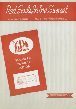 Die Originalversion von "Red Sails In The Sunset" wurde 1935 veröffentlicht. Von verschiedenen Künstlern wurden in den letzten Jahrzehnten zahlreiche Bearbeitungen des Songs angefertigt. Die bekannteste Version stammt von Guy Lombardo. Mittlerweile gehört dieser Song zum Popular Standard. In dieser Ausgabe sind die Klaviernoten in der Tonart G-Dur im Violin- und Bassschlüssel notiert. Akkordbezeichnungen, Text und Gesangsmelodie sind in dieser Ausgabe ebenfalls enthalten.