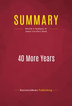 This complete summary of James Carville's book "40 More Years" outlines the author's theory on the emergence of a lasting Democratic majority, beginning with the triumph of Obama's election and lasting around forty years, based on his analysis of political cycles. It summarises his assessment of the Republican party's repeated failures and incompetence during the Bush administration, and the appeal of the more liberal and open Democratic part to the new generation of young voters, believing that this ensures their success for the foreseeable future.