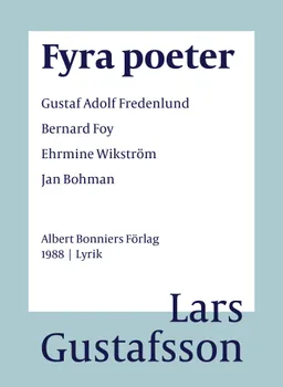 Fyra fiktiva poeter och deras verk, allihop påhittade av författaren Lars Gustafsson. I pseudonymdiktningarna får du möta Gustaf Adolf Fredenlund, Bernard Foy, Ehrmine Wikström och Jan Bohman och lära känna dem dels genom de filosofiska dikterna samt genom de små biografierna som efterföljer poesin. Här fördjupar Lars Gustafsson sitt bildspråk och hans filosofiska frågeställningar.