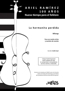 Descubre la emotiva melodía de 'La hermanita perdida', una milonga para voz media solista y cuarteto de cuerdas, creada por el legendario compositor argentino Ariel Ramírez en su centenario. Esta versión, meticulosamente adaptada por Guillo Espel y comisionada por SADAIC como parte de los homenajes al maestro, evoca la nostalgia y la belleza del folklore argentino. Sumérgete en la profunda poesía de esta composición mientras la voz solista se entrelaza con los cautivadores acordes del cuarteto de cuerdas, transportándote a paisajes emocionales únicos. Desde su estreno en el prestigioso Teatro Gastón Barral de Buenos Aires, esta obra ha conmovido a audiencias de todo el mundo, conectando corazones con la esencia misma de la música argentina. No te pierdas la oportunidad de experimentar la magia de 'La hermanita perdida' y añadir esta joya musical a tu colección. ¡ Descarga tu partitura hoy mismo y déjate envolver por su encanto atemporal!