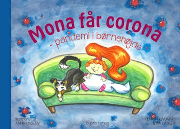 Mona får corona er skrevet af en læge og en mikrobiolog, der med sjove rim og tegninger viser, hvad positiv og negativ betyder, at man kan være smittet uden at blive syg, og hvad man kan finde på, når man kun må være derhjemme.