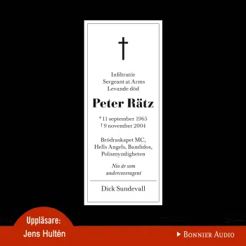 Sveriges mest framgångsrike infiltratör berättar om sin tid under cover i den svenska maffian. Peter Rätz värvades 1996 av kriminalpolisens underrättelsetjänst och steg snabbt i graderna. Under de år han arbetade kom han längre än någon annan infiltratör. Han var bland annat Sergant at Arms i Bandidos, ansvarig för säkerhetsfrågor, vapen och elimineringar. Han genomförde knark- och vapenaffärer och var inblandad i indrivningsverksamhet och människohandel. Och när han var prospect i Brödraskapet MC, arbetade han en tid som livvakt åt Hells Angels svenska president Thomas Möller.Allt med svensk polis goda minne.Han skickades under de här åren på kortare eller längre uppdrag i 14 länder. Oftast utan att polisen i dessa länder hade en aning om vem han var. Under de här åren fick han och hans sambo en son. År 2004 avslöjas Peter Rätz:– Det var Eskilstunapolisen som läckte till en journalist, säger han.Därmed blir han vad som i kriminella kretsar benämns, en levande död.Utan möjlighet till kontakt med vänner och släktingar gömmer han sig någonstans i världen med minst två kontrakt på sitt huvud. Han kan aldrig mer återvända till Sverige. Hans lille son vet inte att hans föräldrar är svenskar, vet inte ens vad deras riktiga namn är.Det är som taget ur en thriller. Men vartenda ord är sant.Så här ser verklighetens kamp mot den svenska maffian ut.Det här är Peter Rätz historia.